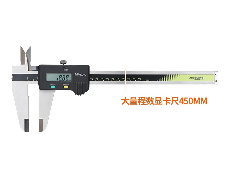 • • 內置ABSOLUTE標尺的數顯大量程卡尺,測量范圍450mm - 1000mm。
